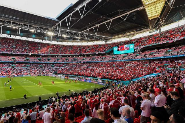周三英格兰对阵丹麦,新温布利大球场一口气放进了超过64000球迷。现场除了昂贵的包厢区还能看到空座之外,已经和疫情前全场爆满时的气氛相差无几。三狮球迷最终也在这里目睹自己的球队在1966年之后首次晋级大赛决赛。