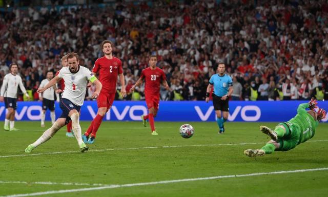 凯恩在12码一罚不中,丹麦球迷在舒梅切尔扑出点球后短暂庆祝了不到3秒钟,但他们的欢呼声随着英格兰队长补射中的,迅速被主场球迷压过。双方在转瞬之间此起彼伏的庆祝,也成了当晚最为残酷的一幕。